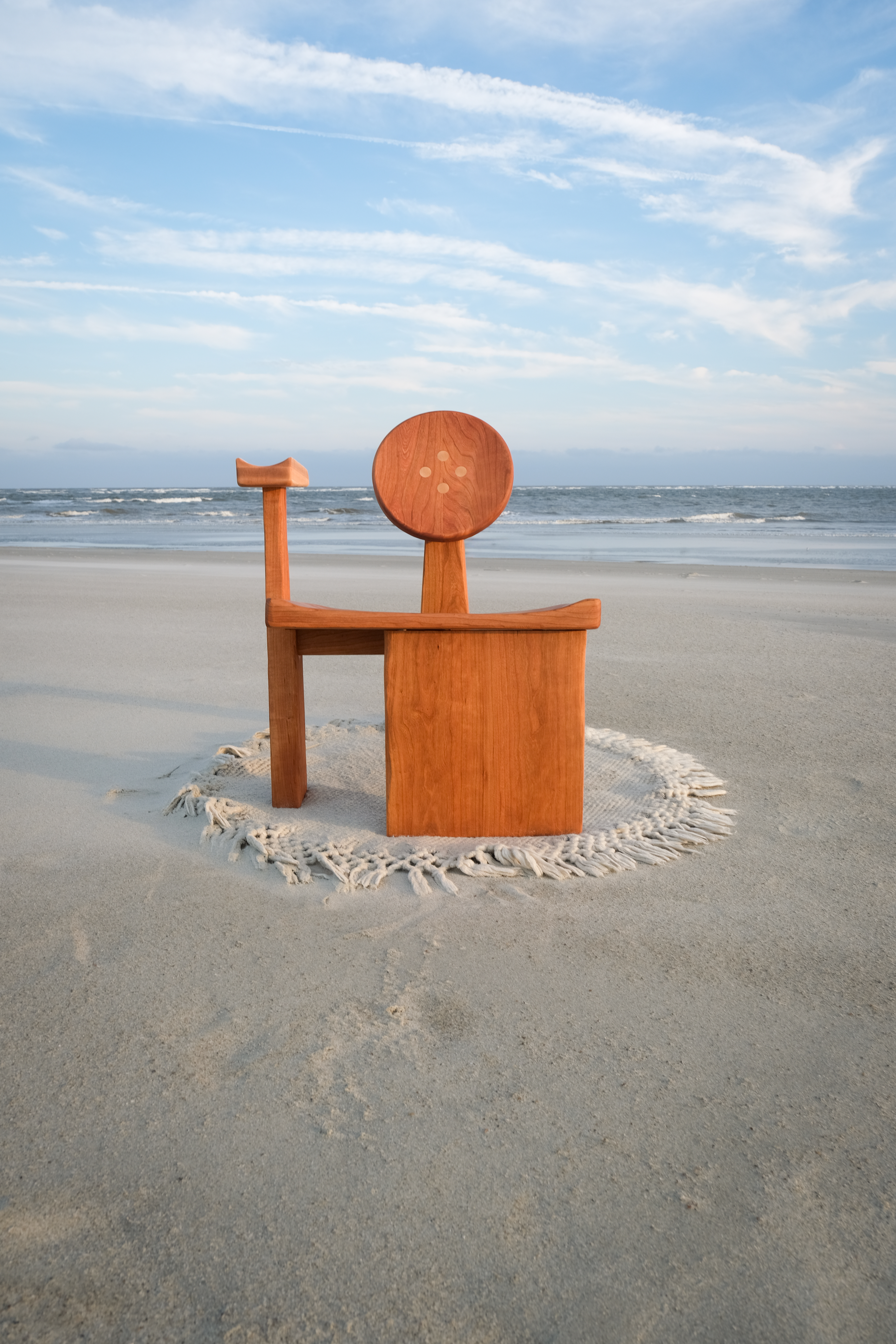 Crafted from eight quarter Cherry, with an asymmetric form, undulating surfaces, a sole armrest and solid-wood seat and back, the goal of the design was to defy ideas and standards of aesthetics and comfort.